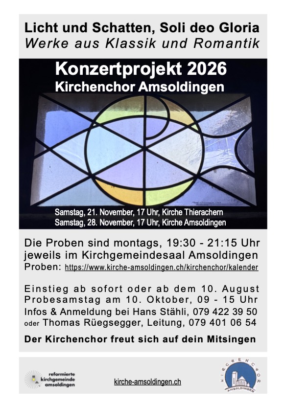 Sonntag 5. Juli 2026 9.30 Uhr, Regionalgottesdienst in der Kirche Amsoldingen.